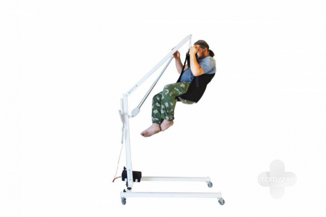 Подъемник MARTIN-BK имеет регулируемые раздвижные полозья с шириной до 150 см. что позволяет подъезжать с торца барокамеры. Тканевы й подвес не требует предварительного подкладывания под больного, что облегчает его перемещение с кресла-коляски или каталки.